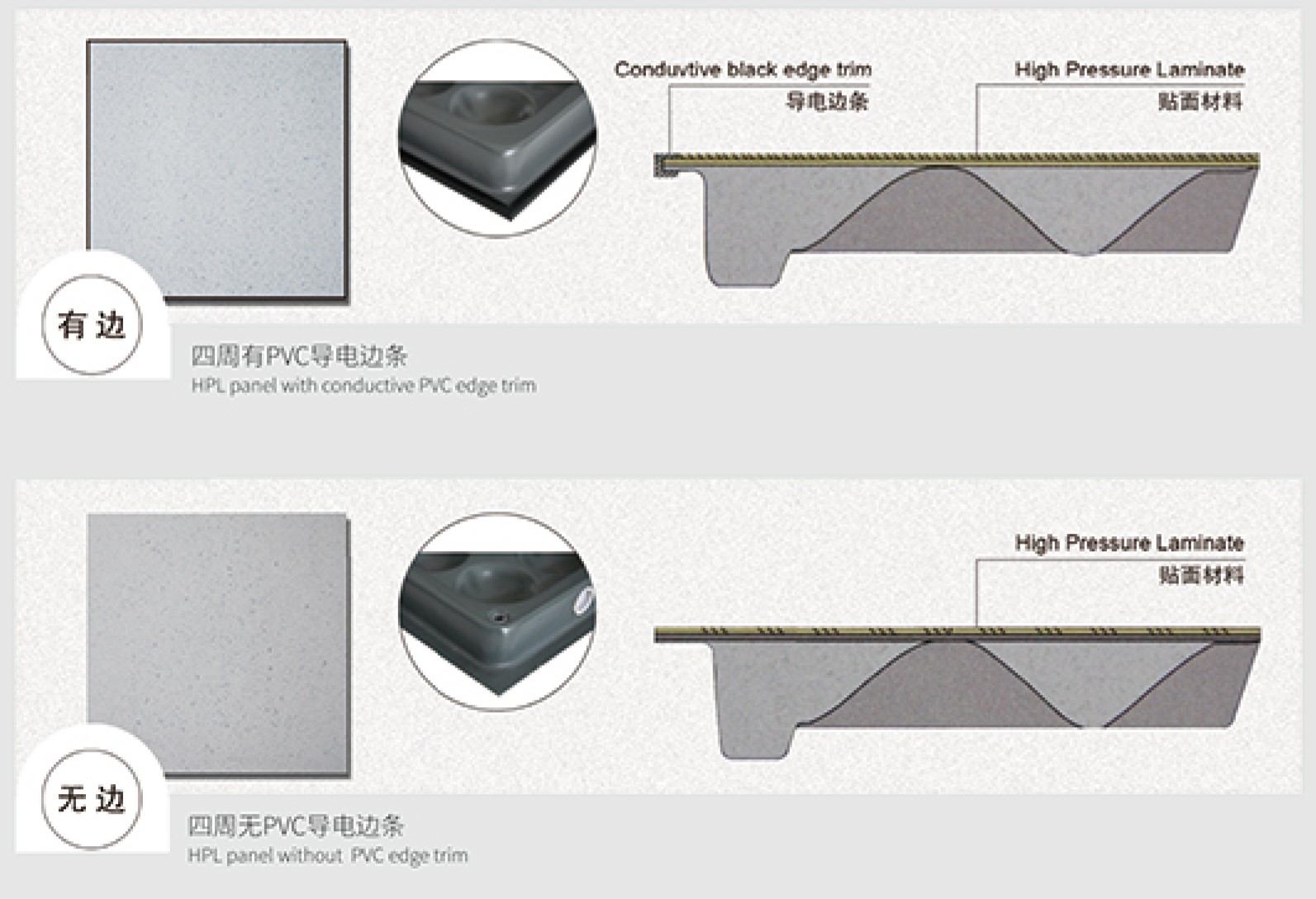 - HPL surface resistivity: 1×10⁶ – 1×10⁹ Ω (ligtas na saklaw para sa electronics)